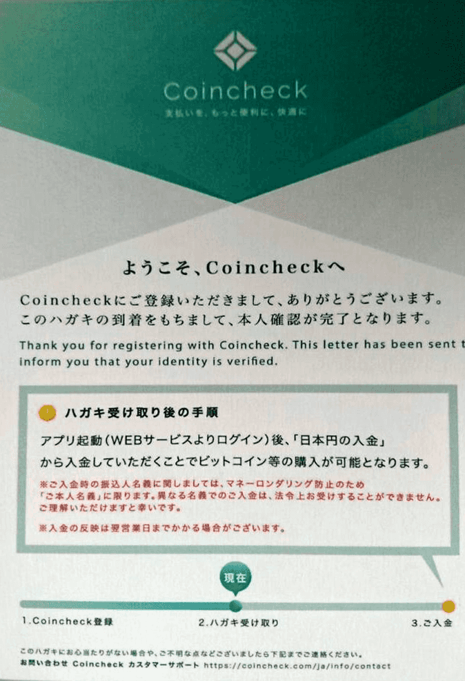仮想通貨の取引所 コインチェック Coincheck からのハガキが到着 これにて本人確認が完了 ビットコイン等の購入が可能に ママプラ