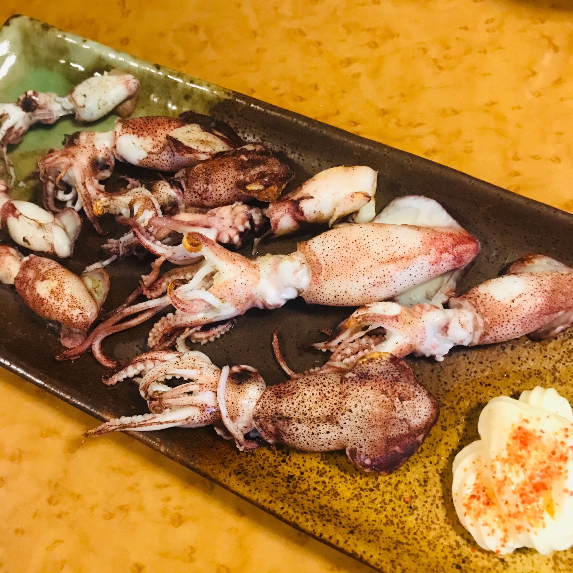 焼き時間は全体で8分~10分です。 1身・足を分け、身から中骨を外し、骨のあった面から焼いて下さい。 これくらい ほんのちょっと反り上がったらひっくり返して下さい。 2焼き始めから約3分後 作り方 1 イカは胴と足を外し、骨等を取り除き、洗って水気を拭いたら食べやすい大きさに切る。 わたはたたいておく。 2 アルミホイルに切ったイカとわた、酒・醤油を混ぜて包み意外と簡単!『イカ』のさばき方 ~基本的なイカのさばき方~ イカのつぼ抜き編 ①胴から、墨袋を破らないように足とわたを引き抜く。 ②目玉の下あたりから、足とわたを切り離す。 ③足の真ん中
